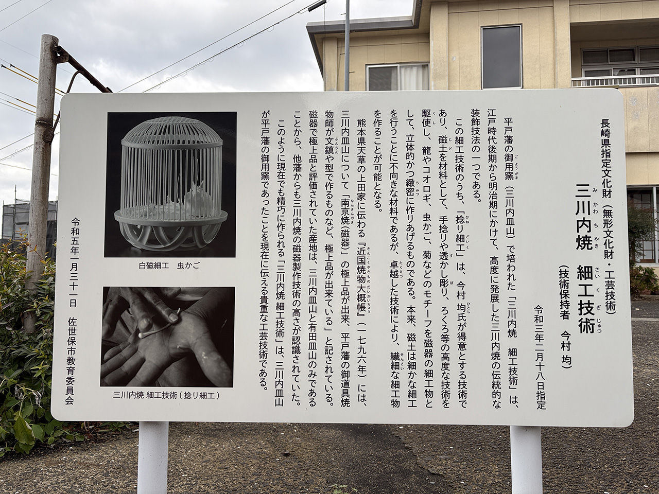 このように現在でも精巧に作られる「三川内焼細工技術」は、三川内皿山が平戸藩の御用窯であったことを現在に伝える貴重な工芸技術である。