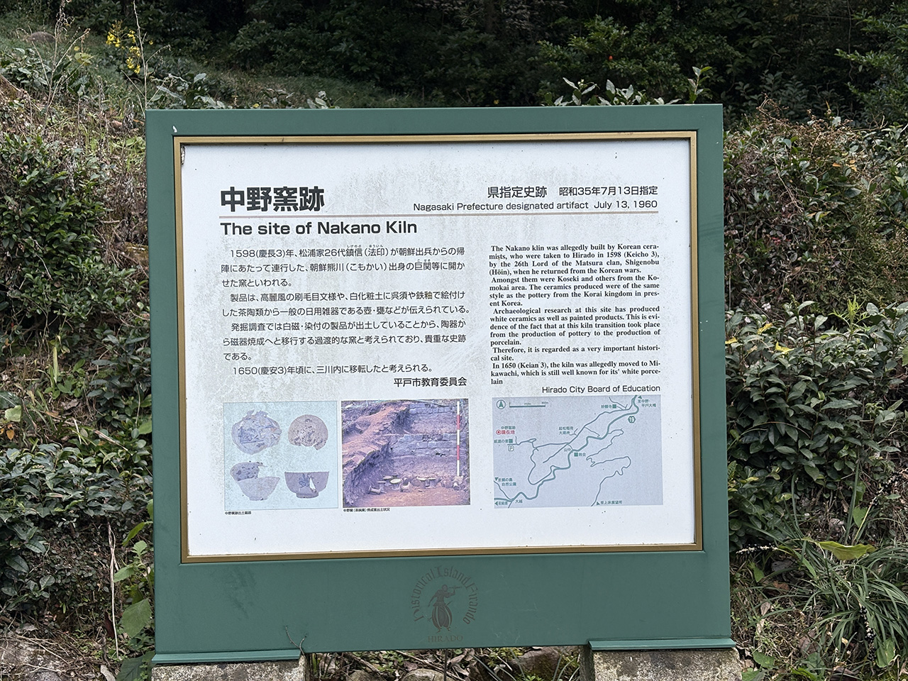 発掘調査では白磁・染付の製品が出土していることから、陶器から磁器焼成へと移行する過渡的な窯と考えられており、貴重な史跡である。
