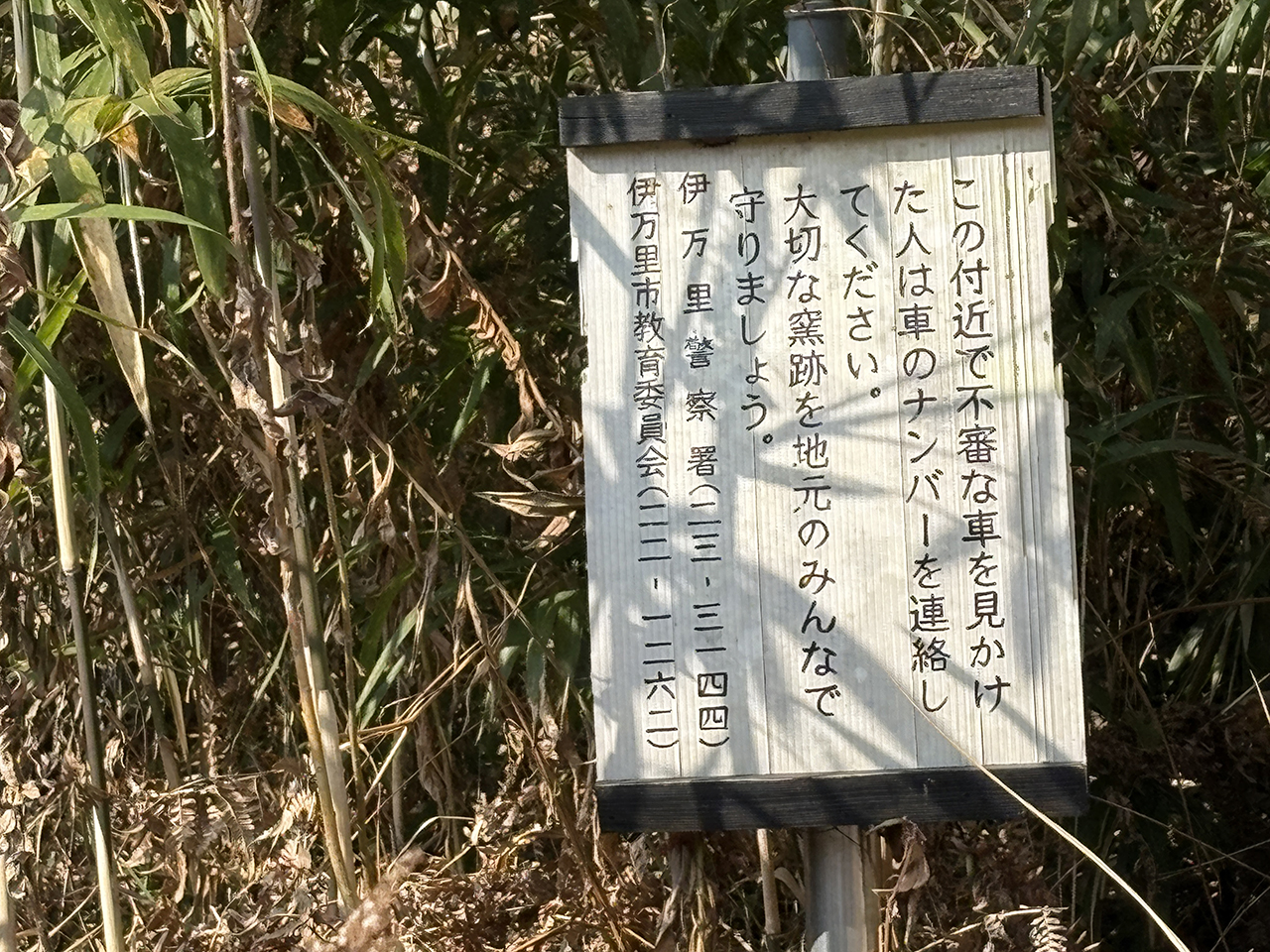 椎ノ峰窯業遺跡群の窯跡など見ることはできませんでしたが、下記の注意書きを見ることができました。